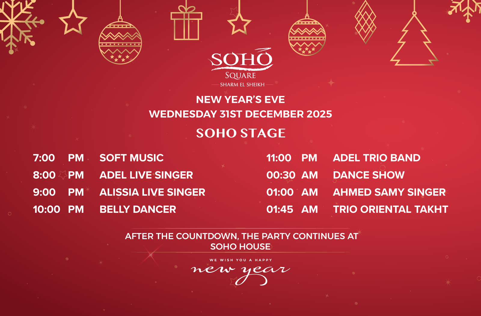 Celebrate New Year’s Eve at the SOHO Main Stage with an unforgettable night of live music,