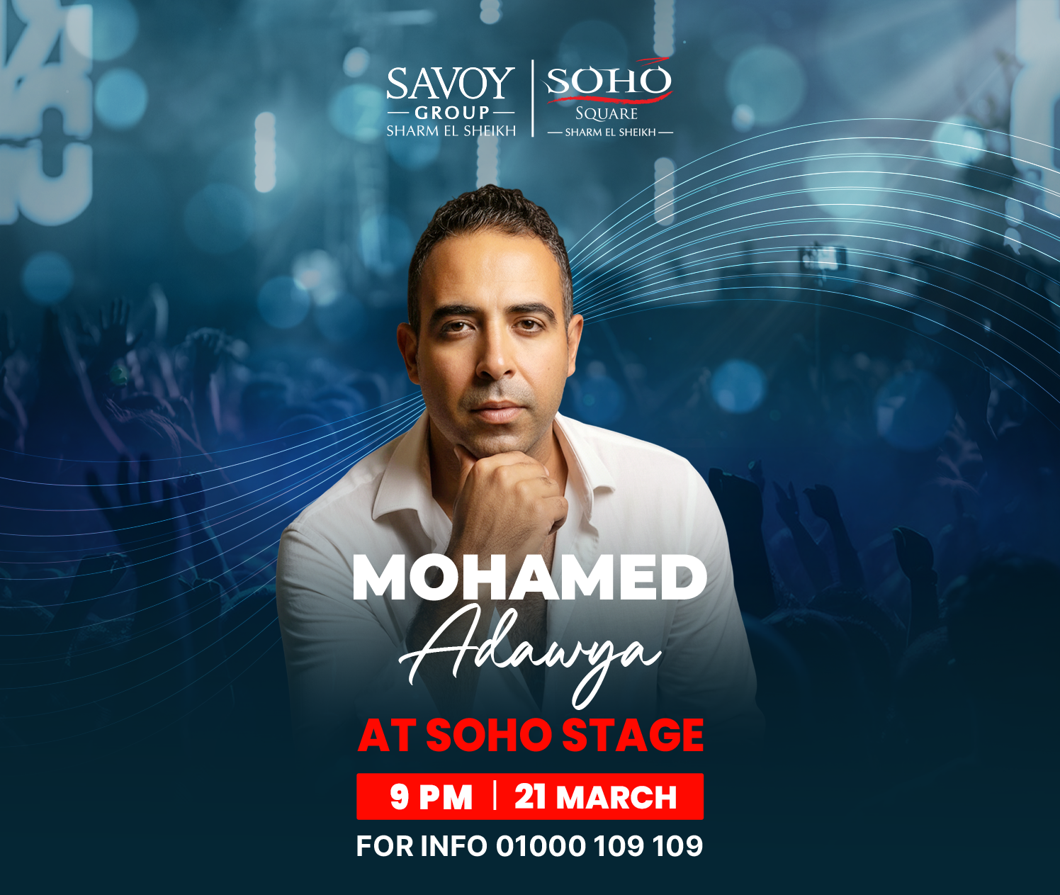 Join Mohamed Adawya for an unforgettable live performance at SOHO Stage. Get ready for a night of great music and vibrant vibes.
