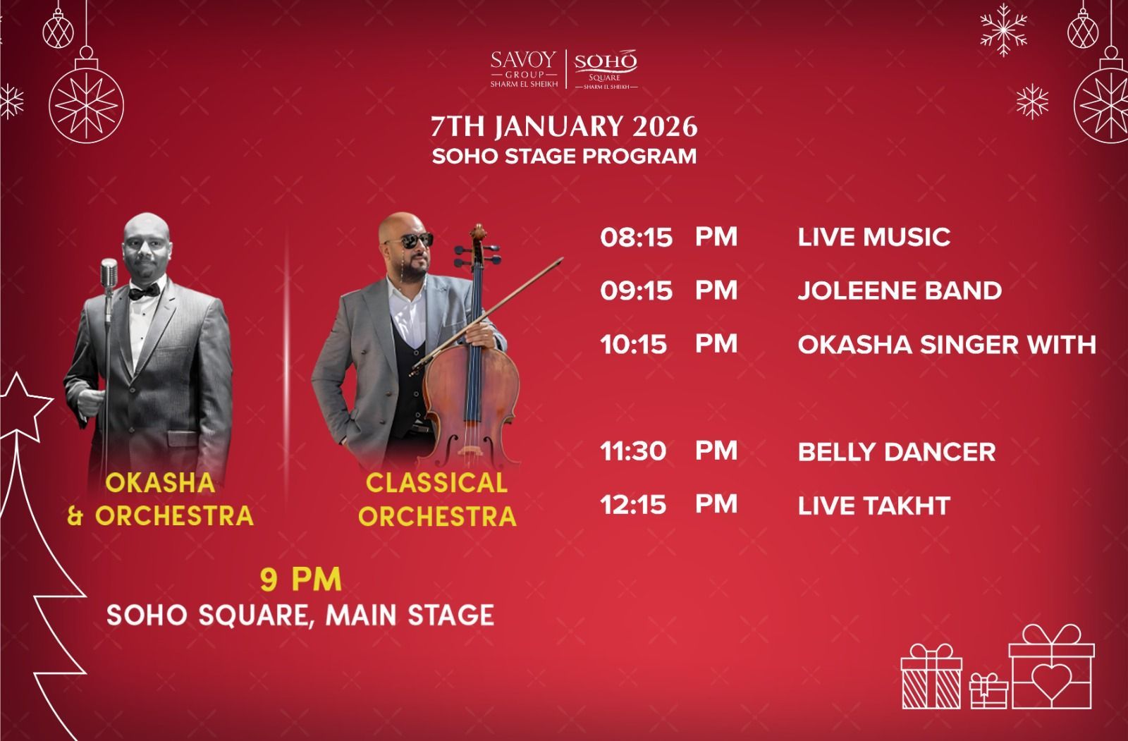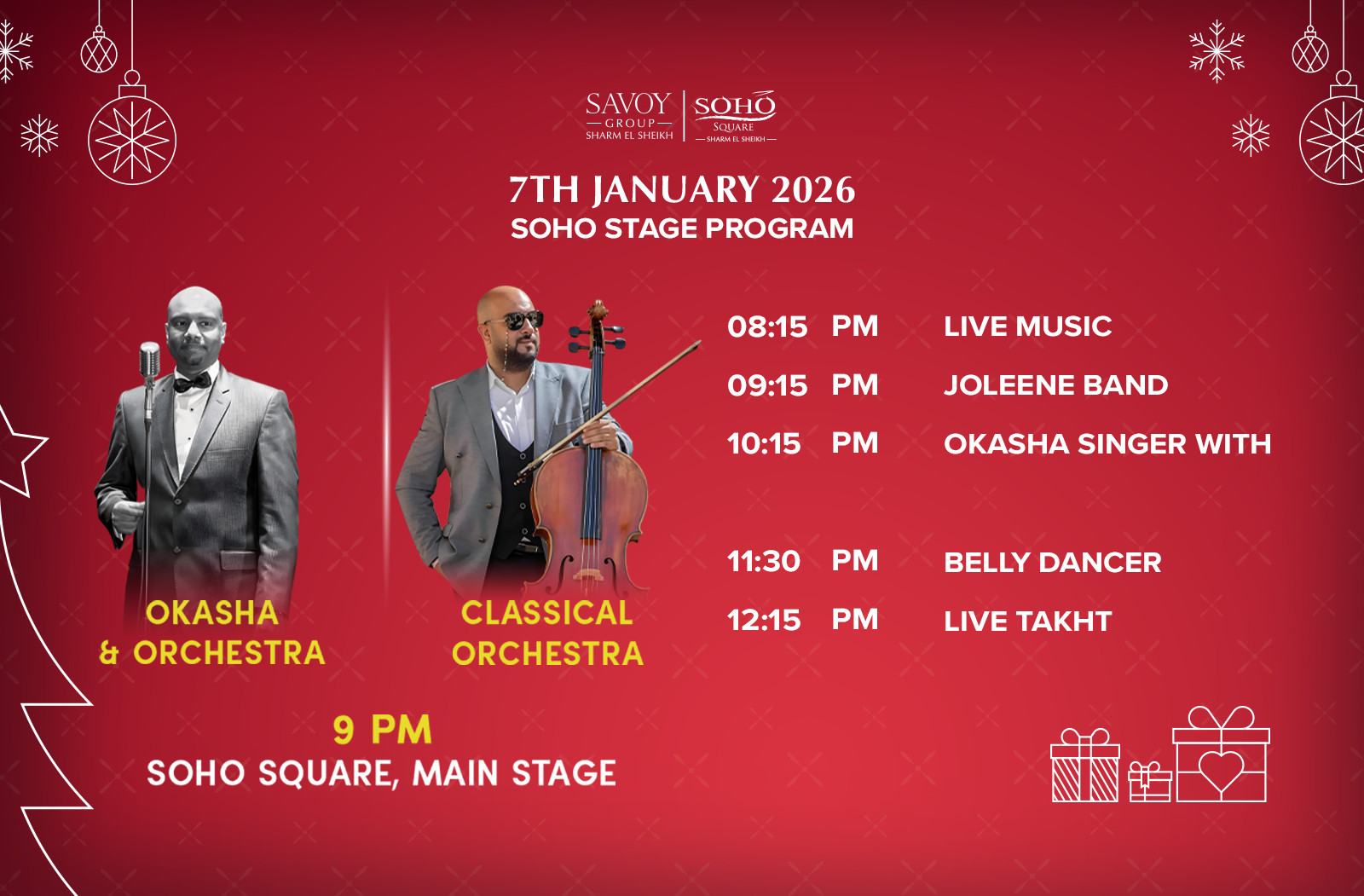 brings together locals and foreigners to celebrate in a joyful, vibrant atmosphere. This magical event transforms Soho Square into a festive wonderland, making it a key highlight in Sharm El Sheikh’s holiday calendar and a must-attend moment for guests of all ages.